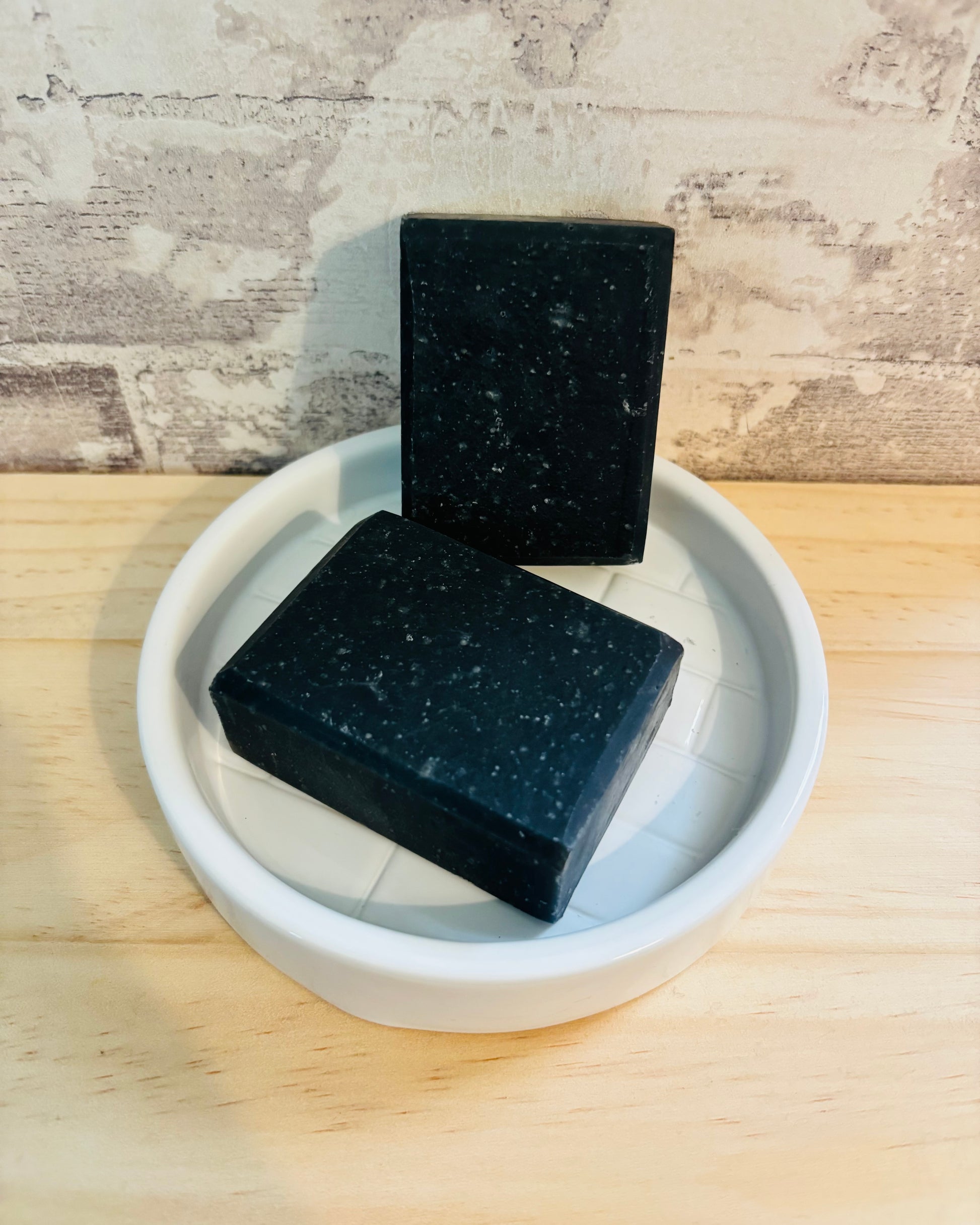 Ingredients: Coconut Oil, Olive Oil, Rice Bran Oil, Mango Butter, Castor Oil, Distilled Water, Sodium Hydroxide (Lye), Activated Charcoal, Kaolin Clay.